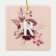 Modern Pastel Pink & Red Floral With Initial Ceramic Ornament