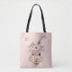 Modern Pastel Pink Watercolor Bunny With Flowers Tote Bag