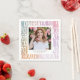 Modern contemporary grungy photo graduation party decor napkin. With space for photo and information on the back of the card. Modern girly pink, pur[ple, teal, blue, green, orange, yellow pastel rainbow and white colour can be customised to suit your style.