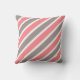 Modern throw pillow features diagonal stripe pattern in pastel red, grey and white.