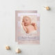 Baby girl photo announcement featuring your own favourite photo, framed by soft pastel peach and pink stripes, with a touch of grey and subtle gloss.