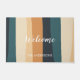 Modern geometric stripes custom family name doormat with "Welcome" in Calligraphy Script.