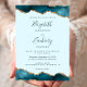 This elegant modern wedding invitation features top and bottom teal blue watercolor agate borders trimmed with faux gold glitter. The customisable text combines dark teal handwriting, copperplate and italic fonts on a pastel teal background. The reverse side features a matching teal and gold agate design.
