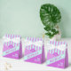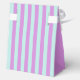 Modern Pastel Teal Pink Stripes Favour Box is a party perfect for girls' birthday or any occasion. The soft pastel colours teal and pink creates an exciting vibe to the design. The vertical stripes from the cover runs all the way to the back while the sides are plain. The front consists of a pastel teal strip highlighting the celebrant name while at the right bottom corner are the birthday details on a dark pink background. The "thank you" on a diamond shape dark pink background accentuates the vertical stripes cover.