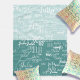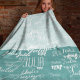 A simple and stylish pattern of names (with your own special name) on a medium tone of teal with more blue... a fleeceblanket divided in two bluish tones
