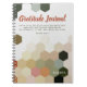 A stylish gratitude journal for fall or any season of the year, featuring a modern pattern of hexagons in muted autumnal colours - green, beige, orange, pink and white. The title editable "Gratitude Journal" is in muted orange modern script font, and underneath is the Bible verse "Enter into His gates with thanksgiving, And into His courts with praise. Be thankful to Him, and bless His name." Psalm 100:4 Personalise with your name.