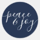 Modern Peace And Joy Blue White Christmas Classic Round Sticker
