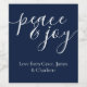 A colourful joyful modern deep midnight blue and white peace and joy typography design Christmas bottle label from Ricaso - perfect holiday table decoration accessories or ideal for gifting - add your own text to this on trend label - from the peace and Joy collection - midnight blue is one of this holidays must have colours