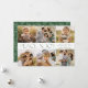 Colorful and modern holiday card featuring a 6 photo collage of your favorite family photos. "Peace and Joy" is displayed in alternating light and dark green lettering. Personalize the front of the card by adding a custom holiday greeting, name, and the year. The card reverses to display a white winter foliage pattern with a dark green background.