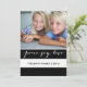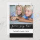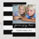 Send out your holiday greetings to family and friends with this versatile, bold, modern holiday photo card with the words "Peace, Joy, Love" written in a white script font on bold stripes pattern. Design by ELKE CLARKE© FOR MONOGRAMGALLERY. Replace sample photo with your own. Black and white striped background on back of card. Other colours available in store or on request.