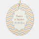 Modern peach, grey, ivory chevron pattern custom ornament design. There is a frame with your names in the centre. Add your text, monogram or initials. A stylish zig zag design using the classic stripes with contemporary yet vintage look in a sense that can be personalised. You can change background and text colour choosing from over 200 colours from Zazzle colour chart. Elegant, classy and playful design to protect your electronic devices.