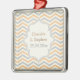 Modern peach, grey, ivory chevron pattern custom ornament design. There is a frame with your names in the centre. Add your text, monogram or initials. A stylish zig zag design using the classic stripes with contemporary yet vintage look in a sense that can be personalised. You can change background and text colour choosing from over 200 colours from Zazzle colour chart. Elegant, classy and playful design to protect your electronic devices.