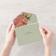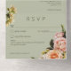 AVAILABLE WITH OR WITHOUT A QR CODE TO SCAN IN THE RSVP AREA. Celebrate your love story with an invitation as timeless and elegant as your big day. Featuring lifelike peach, blush, yellow, and white blooms nestled in soft greenery against a gentle sage green background, this design sets a romantic, garden-inspired tone. Clean, modern typography adds a touch of sophistication, making this the perfect choice for couples seeking a fresh, floral aesthetic with contemporary charm. Created by Simply Farmhouse Press.