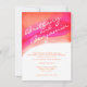 Modern Peach Pink Art Splash Wedding Invitations with the bride and groom's name at the top written at a diagonal. The back of the invitation is white. Just add your own wedding details to this unique colourful and modern wedding invitation. The colours include peach, orange, coral, and various shades of hot pink. Perfect for spring or summer wedding invitations.