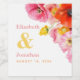 Celebrate your wedding with these modern and stylish wine or champagne labels. This modern, elegant peach, yellow and pink poppies themed wine bottle labels are customisable with your own details.