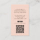This business card features a professional photo, suitable for many professional titles that require a stylish feel, like fashion stylist, fashion designer, personal stylist, model, or other creative professionals. The background is a peach pink hue. The reverse side features the contact info, social media and QR code. The background is a subtle sage green. Replace this photo with your own creative image.