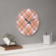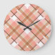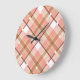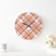 Modern Peach Red Orange White Brown Plaid Pattern Large Clock