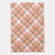 Modern Peach Red Orange White Brown Plaid Pattern Tea Towel