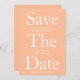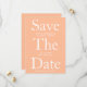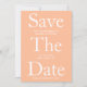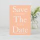 Modern save the date with bold calligraphy in a peach colour. Personalise it with the future bride and groom's names, the date, and the location. Add any colour to the back by clicking the button to edit the design.