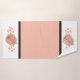 Stylish bath towel set done in peach, black and white. Watercolor graphic paint splotches and black line leaves are accented with polka dots as a finishing touch.