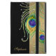 NOTE: This is a flat printed image, there are no layers, jewels or metallic inks use - however it is a very realistic graphic rendition. COLOR PALETTE: black, gold brushed metal look, tan, emerald green, lime, aqua, royal blue, and purple DESIGN COLLECTION: These elegantly swirled peacock feathers were hand painted in watercolor by Audrey Jeanne Roberts. The original artwork beautifully captures the iridescence of the feather in bright, deep jewel tones. There are graphically created diamond like jewels with a gold setting around them that are scrolled along the curve of the feathers. The background is a brushed metal pattern and your name is easy to personalise using the the custom template provided for simple customisation.
