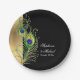 Modern Peacock Feathers Faux Jewel Scroll Weddings Paper Plate