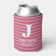 Modern Personalise Monogram White Stripes Pattern Can Cooler