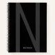 Modern Personalised Big Initial Name Grey Black Notebook