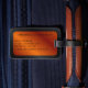 Create a personalised luggage tag with stylish black and orange design. Template text makes it easy to type your name, address, phone and other contact information.