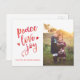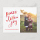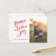 Modern Personalised Peace love joy photo card postcard featuring lovely handwritten typography and hearts. Wish everyone a Merry Christmas in style!