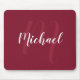 Modern Personalised Monogram and Name Burgundy Red Mouse Pad