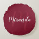 Modern Personalised Monogram and Name Burgundy Red Round Cushion