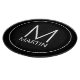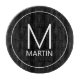 Modern minimalist design features personalised monogram and name in white modern sans serif font style on black background.