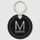 Modern minimalist design features personalised monogram and name in white modern sans serif font style on black background.