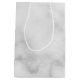 Modern minimalist design features personalised monogram and name in grey modern sans serif font style on white marble background.