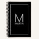 Modern minimalist design features personalised monogram and name in white modern sans serif font style on black background.