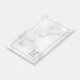 Modern minimalist design features personalised monogram and name in grey modern sans serif font style on white marble background.