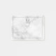 Modern minimalist design features personalised monogram and name in grey modern sans serif font style on white marble background.