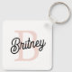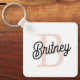 Modern Personalised Monogram and Name Pastel Pink Key Ring