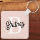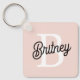 Modern Personalised Monogram and Name Pastel Pink Key Ring