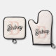 Modern Personalised Monogram and Name Pastel Pink Oven Mitt & Pot Holder Set