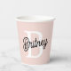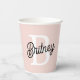 Modern Personalised Monogram and Name Pastel Pink Paper Cups