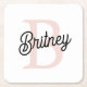 Modern Personalised Monogram and Name Pastel Pink Square Paper Coaster