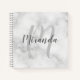 featuring personalised name in grey modern script font style and monogram in light grey modern script font style as background on white marble background.