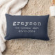 Modern Personalised Name Birthdate Blue Lumbar Cushion