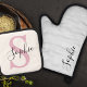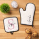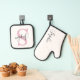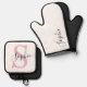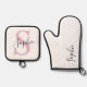 Modern Personalised Name Monogram Pink Oven Mitt & Pot Holder Set