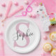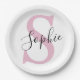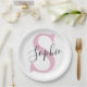 Modern Personalised Name Monogram Pink Paper Plate
