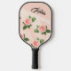 Modern Personalised Name Pink Rose Flower Black Pickleball Paddle