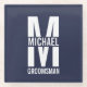 featuring personalized groomsman's monogram, name and title in white bold sans serif font style on navy blue background.