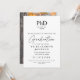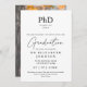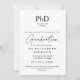 This white and black elegant PhD degree graduation announcement can be personalised with your graduation details and a photo on the reverse. Designed by Thisisnotme©